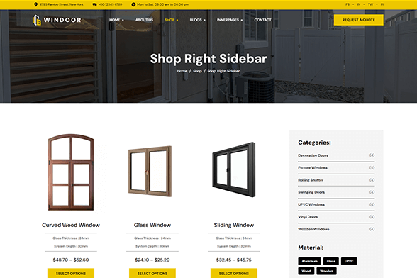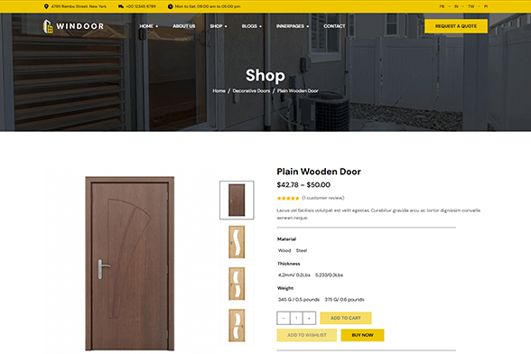 Windoor is a specially designed theme for Doors and Window selling websites. The flexible customization funtionality of the theme allows you to create every type of furniture, home interiors, and contruction related product websites.